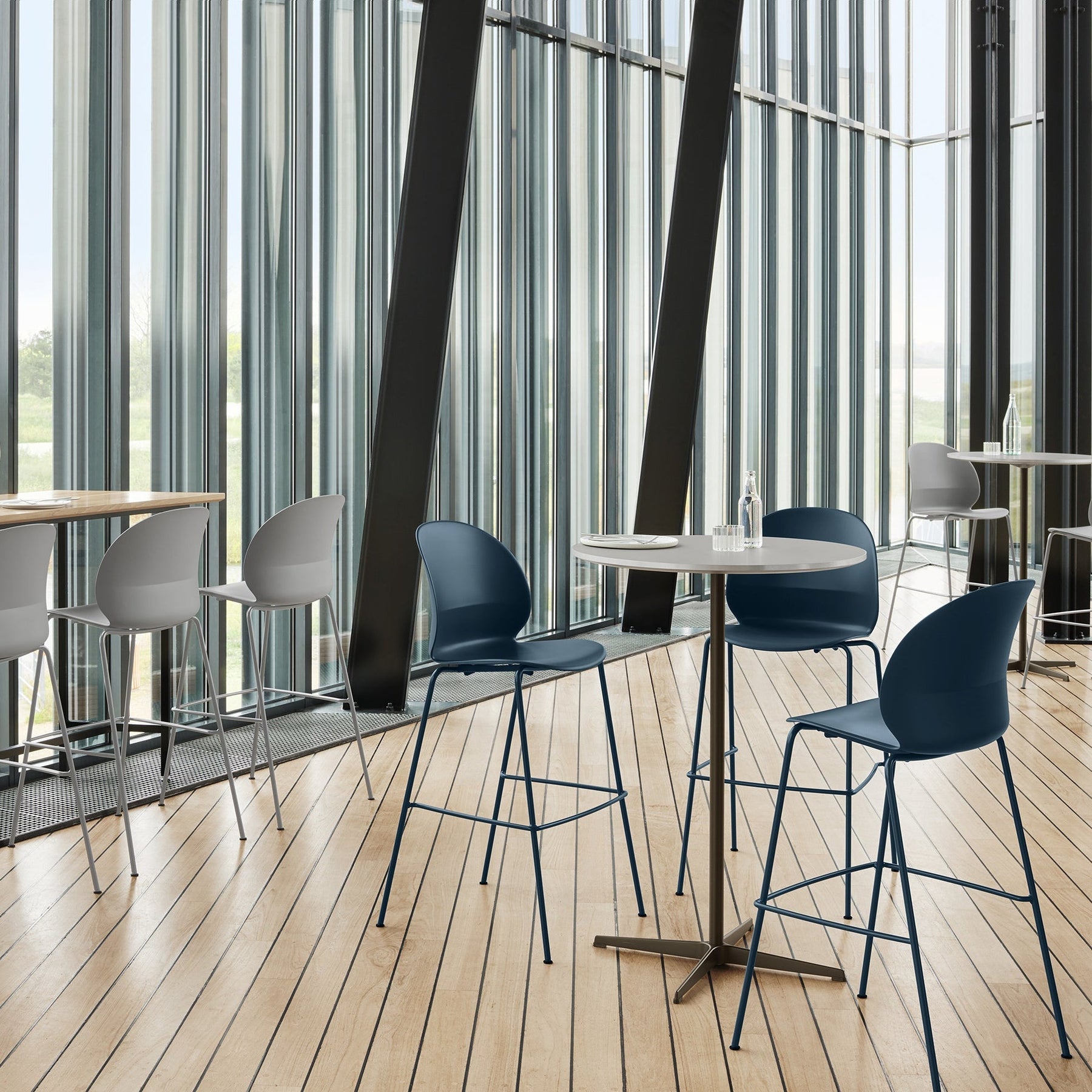 The N02 Recycle Stacking Stool brings the visionary minimalism of Japanese studio Nendo to sustainable seating. Constructed from circular plastic—specifically upcycled household waste collected in Central Europe—the stool’s shell features a distinctive "crease" line across the backrest. Inspired by a folded sheet of paper on the designer's worktable, this detail is not only visual but structural, providing enhanced lumbar support. Supported by a durable steel tube frame with an integrated footrest, the stool is designed for versatility in modern kitchens, canteens, and workspaces. Available in both counter and bar heights, the N02 is lightweight and stackable, making it an effortlessly practical choice for flexible interiors.