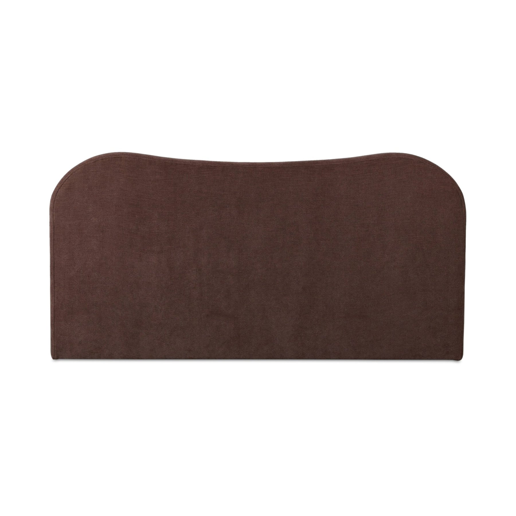 The Julia Queen Bed from Four Hands defines the bedroom with soft geometry and plush comfort. Distinguished by its continuous, swooping curves, the frame is fully wrapped in a linen-blend performance fabric in a deep Laughlin Plum hue. The generous padding softens every angle, creating an inviting, sheltered feel, while the textured upholstery adds depth to the elegant, fluid form.