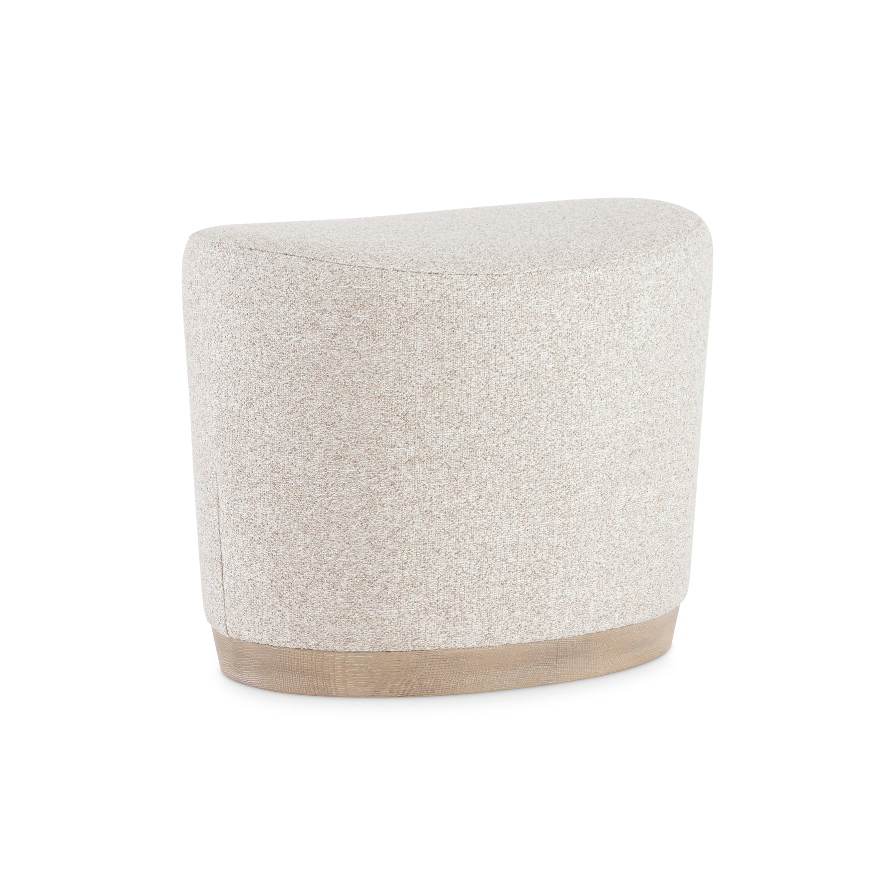 The Loggia Oval Bench from Bernhardt captures the collection's essence with its serene, organic silhouette and refined craftsmanship. Defined by a softly sloping seat that invites relaxation, this petite accent piece is fully upholstered in durable performance fabric that seamlessly meets a wire-brushed oak base. It serves as a sophisticated perch for a vanity, dressing area, or living space.